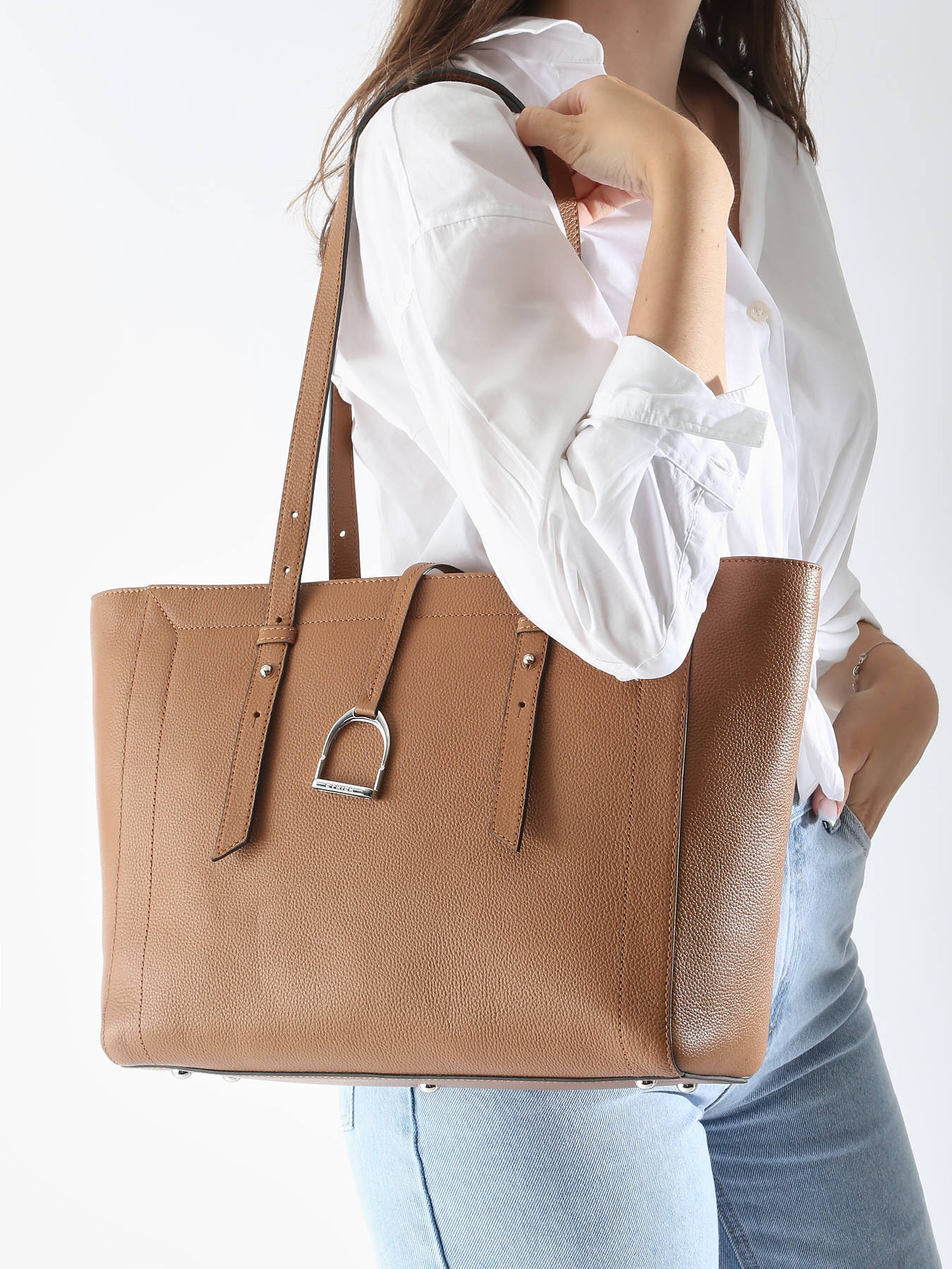 The ALTESSE line includes a large tote bag. It is made from full-grain cowhide leather and features the signature ETRIER clasp, giving it a chic and trendy look. The bag comes with adjustable handles, making it practical for a shorter or longer shoulder carry. Its size easily accommodates A4-sized documents.